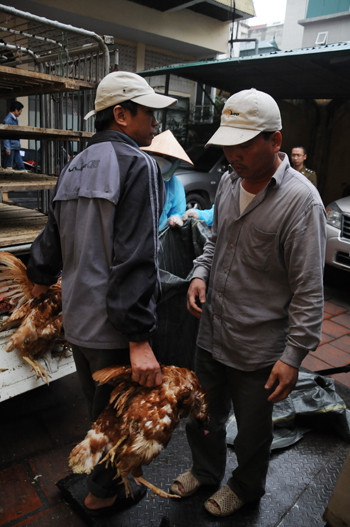 Sáng nay (12-3), tổ công tác liên ngành đã tiến hành lập biên bản xử phạt hành chính, đưa số gà trên phun thuốc phòng dịch và chuyển cho cơ quan tiêu hủy tại bãi rác Nam Sơn (Sóc Sơn, Hà Nội).