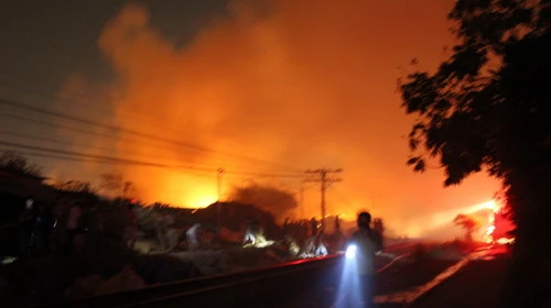 Cháy lớn gần ga đe dọa tàu Bắc - Nam