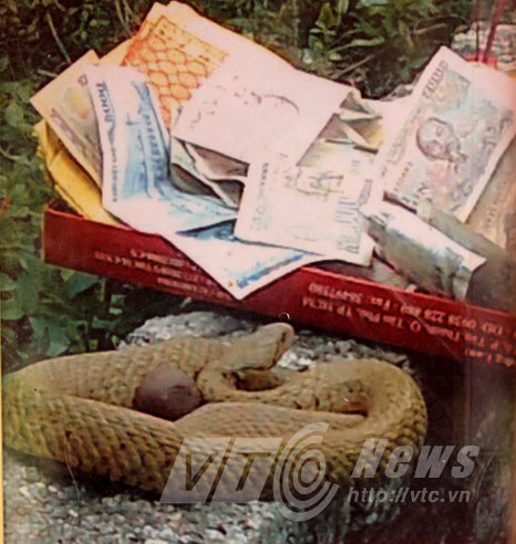 | Hóa vàng sau khi cúng "ông rắn" . |