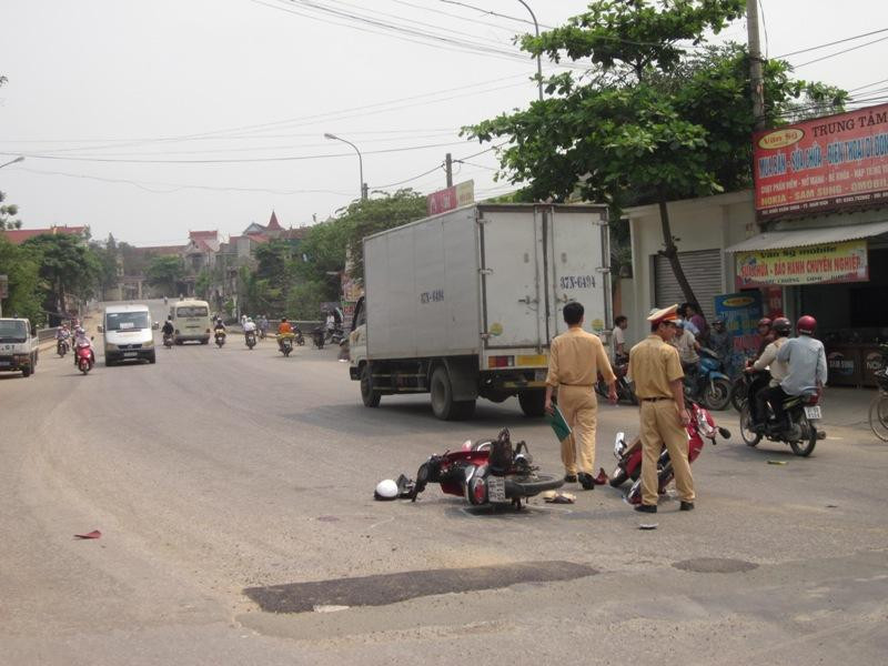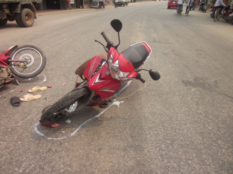 Cú đâm rất mạnh khiến 2 bánh trước của hai chiếc xe đều nổ tung, xe máy BKS 37V 8950 bị nổ bật vành. Hậu quả, ba người trên hai xe máy văng xuống lòng đường, bị thương nặng (hai người cầm lái bị thương rất nặng), lập tức được mọi người đưa đi cấp cứu tại bệnh viện.