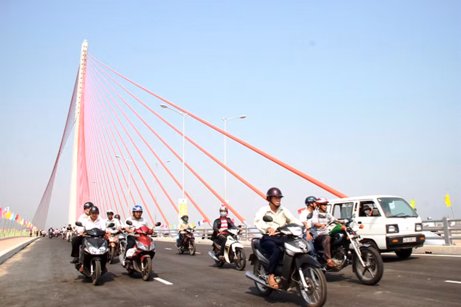 Đoàn xe “trẩy hội” trên cầu Trần Thị Lý - Ảnh Nguyễn Huy.