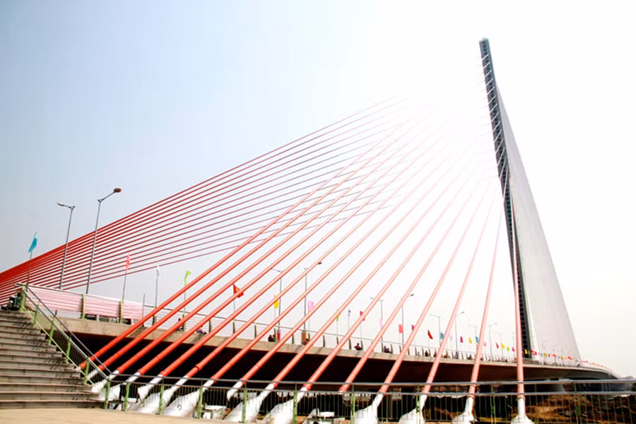 Điểm nhấn công trình này chính là trụ tháp đơn nghiêng nhưng vẫn đảm bảo chịu lực tải trọng khai thác của cầu, lên đến 25.000 tấn - thuộc vào loại lớn nhất thế giới hiện nay.