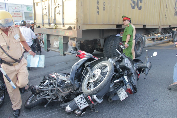 Trước đó, khoảng 6h45 cùng ngày, xe container loại 40 feet BKS 57L - 0061 chở đầy hàng hóa, do tài xế Nguyễn Hoàng Thương (28 tuổi, quê Bình Định) điều khiển, lưu thông trên xa lộ Hà Nội theo hướng cầu vượt thép Thủ Đức về cảng Cát Lái.