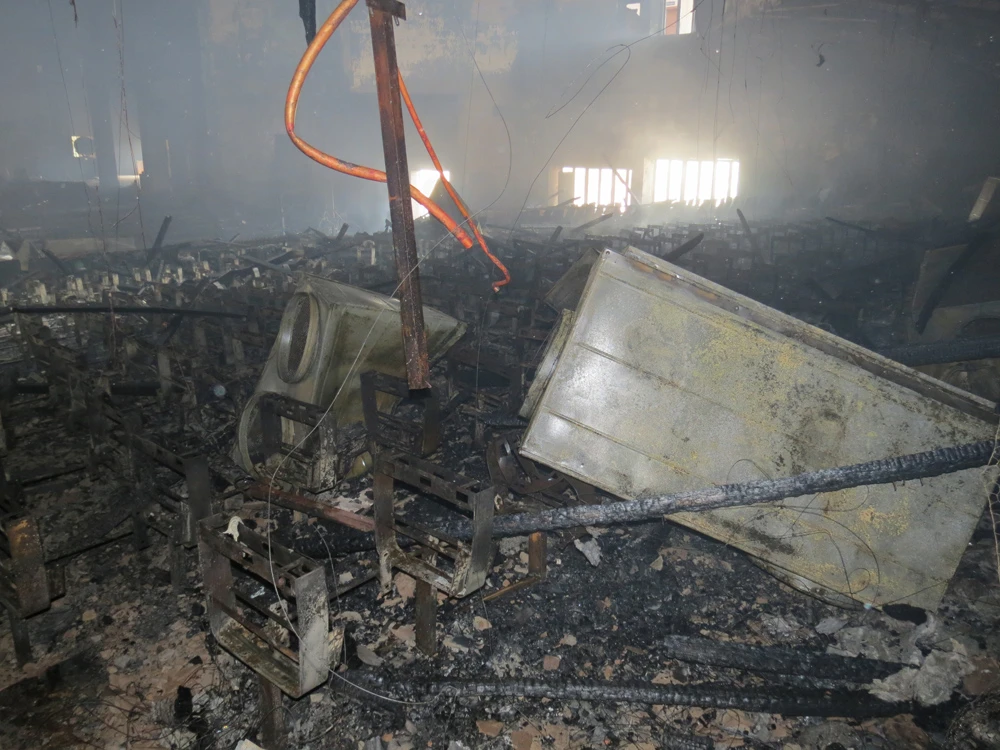 Hiện trường sau vụ cháy là đống đổ nát, không khí ngột ngạt, nhiều mùi khét lẹt. Gần như nội thất của toàn bộ tòa nhà rộng mấy nghìn mét vuông và cao trên 20 mét bị thiêu rụi hoàn toàn.
