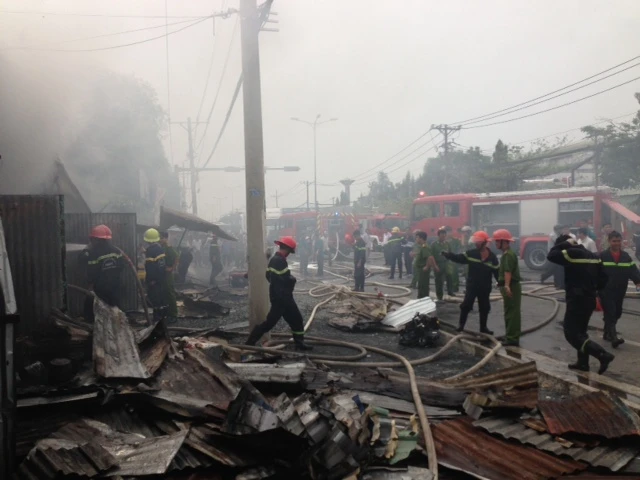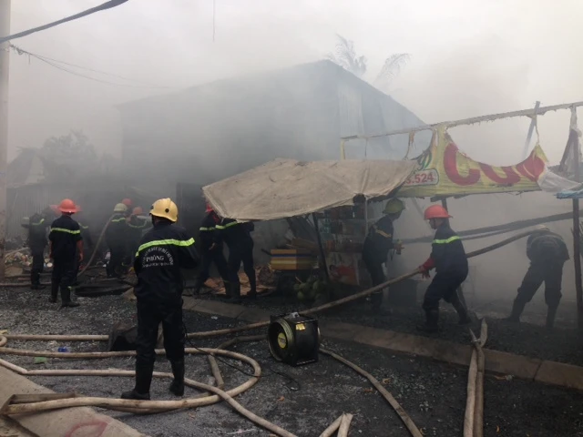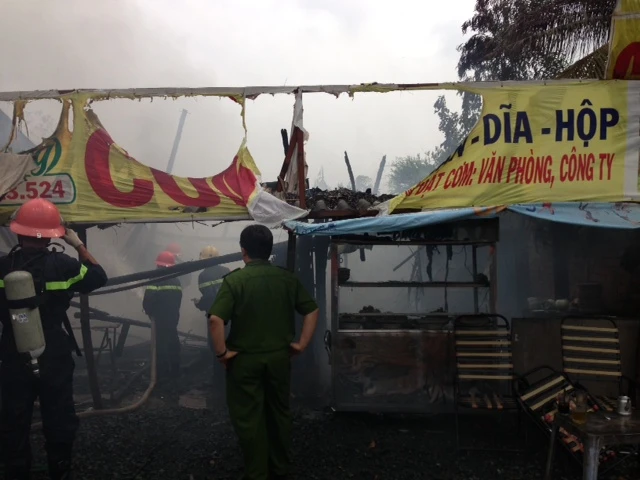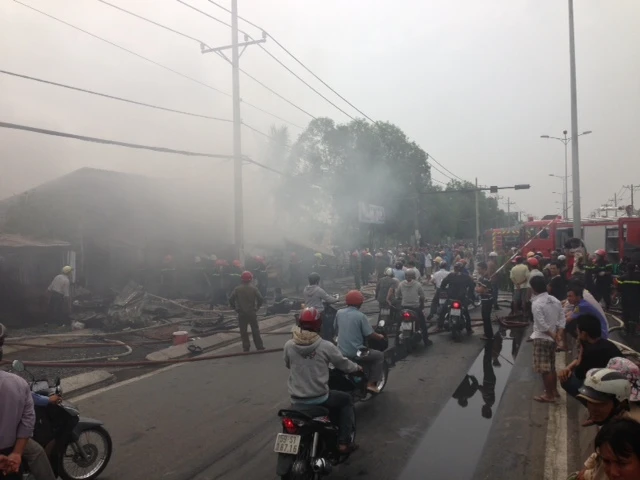 TP - Sáng 9/4, một tiếng nổ lớn phát ra từ một quán cơm trên đường Nguyễn Thị Định, (quận 2, TPHCM). Liền sau đó, đám cháy bùng lên dữ dội. Vụ hỏa hoạn xảy ra sát phà Cát Lái khiến giao thông ách tắc.