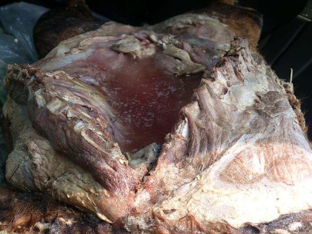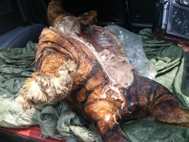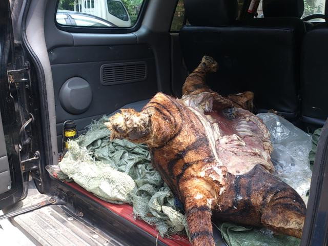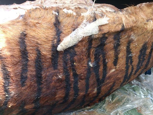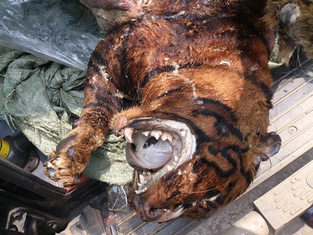 Khám xét tại chỗ, lực lượng chức năng phát hiện cá thể hổ đông lạnh, nặng 80kg (thuộc nhóm nghiêm cấm khai thác sử dụng vì mục đích thương mại).