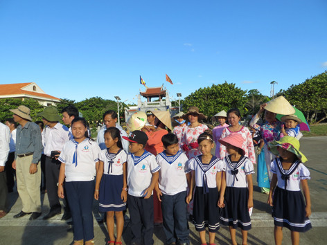 | Các bé trên đảo Trường Sa Lớn cùng ba mẹ giữ đảo. |