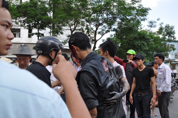 | Người dân giải cứu lái xe thoát khỏi chiếc xe tải. |