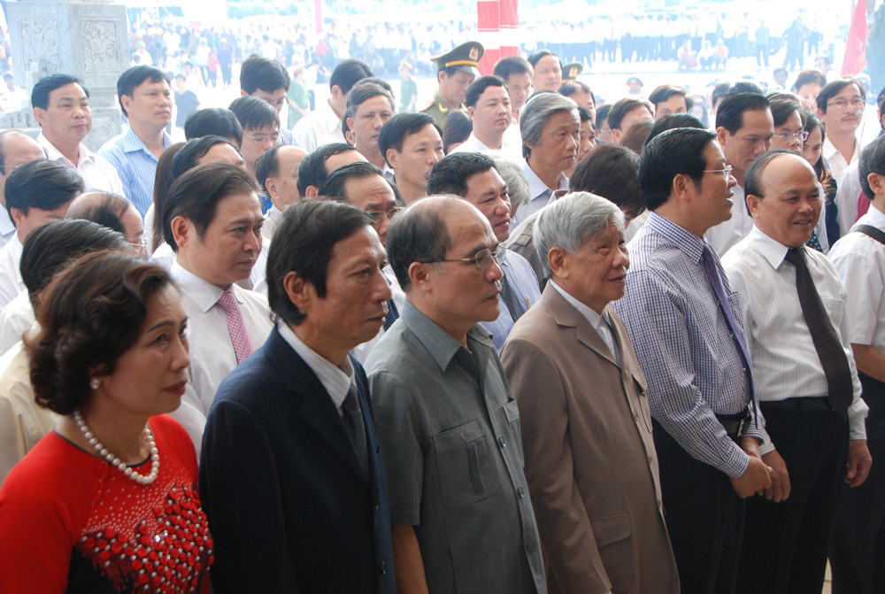 | Ông Hồ Đức Việt và những lãnh đạo cao cấp viếng mộ TNXP ở Truông Bồn. |
