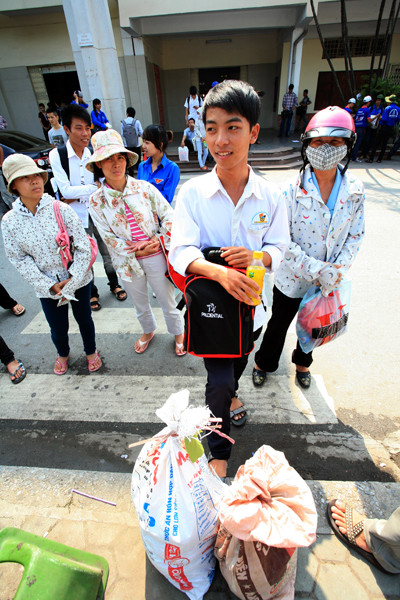 Từ ngày 1/7 tới nay, hàng vạn thí sinh nườm nượp đổ về Thủ đô Hà Nội để chuẩn bị dự thi đợt thi đại học, cao đẳng tới. Có thí sinh tay phải xách gà, tay trái xách rau, gạo để chuẩn bị cho những bữa ăn trong kỳ thi tới. Có thí sinh được cả gia đình hộ tống đi dự thi, từ bố, mẹ, chị, em...