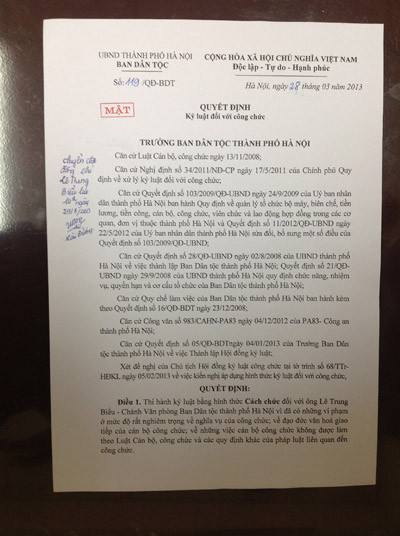 Chuyện hy hữu: Kỷ luật công chức đóng dấu 'mật'!?
