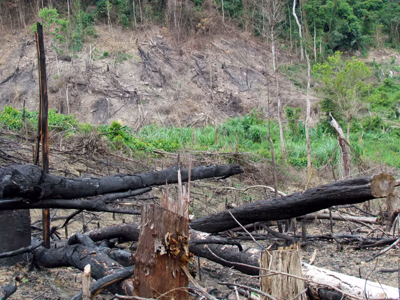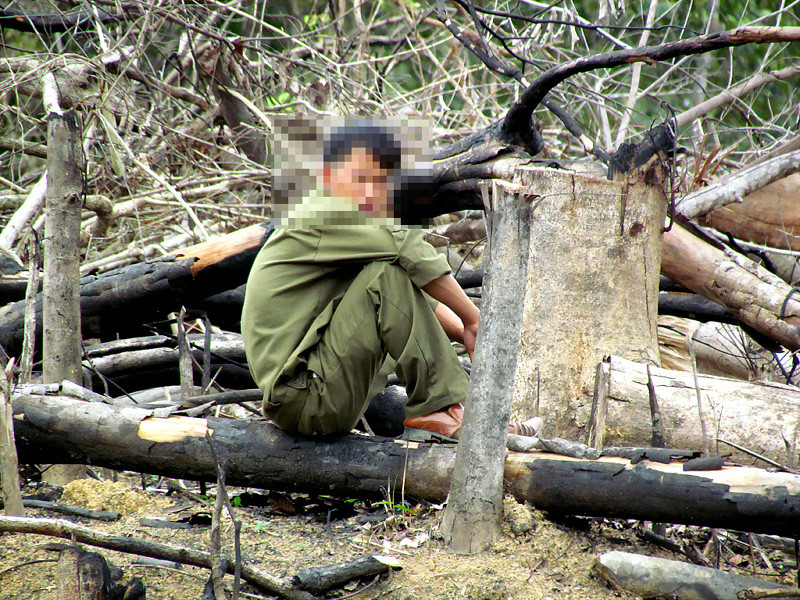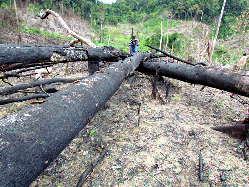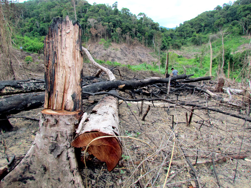 Trên một khu vực trải rộng ba triền núi, mọi cây lớn, cây nhỏ đều bị cưa hoặc chặt ngã. Rừng xanh đã thành rừng đen.
