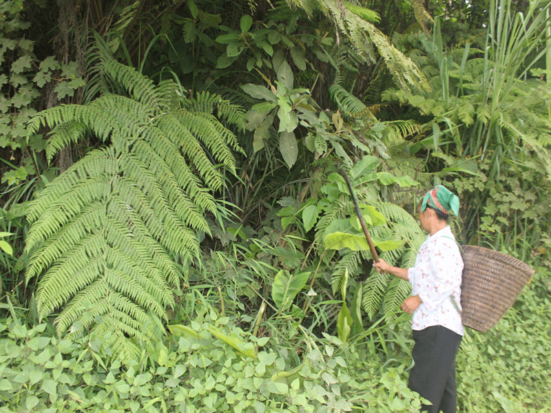 Anh Lô Văn Hiếu ở xã Na Loi dẫn đầu một nhóm bốn người, tất cả đều đeo gùi trên lưng và mang theo dao phát rẫy. Anh Hiếu cho biết: "Lấy cây cu ly không khó, nhưng tìm vị trí cây cu ly sống mới kỳ công. Chúng tôi trèo đèo lội suối suốt cả ngày mà cũng chỉ lấy được trên 100kg cu ly mà thôi".