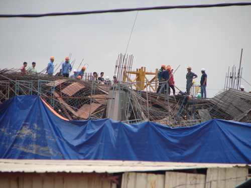 Ngay sau khi xảy ra sập công trình, lực lượng chức năng đã phong tỏa gắt gao hiện trường. Hàng chục thợ thi công đang vây kín công trình để xử lý sau sự cố. Người dân tụ tập rất đông để xem vụ việc. Các phóng viên cũng không được cho vào bên trong tiếp cận hiện trường.