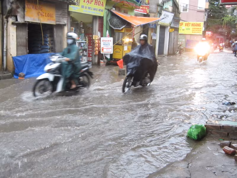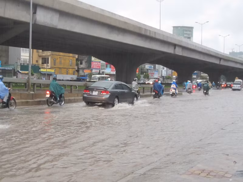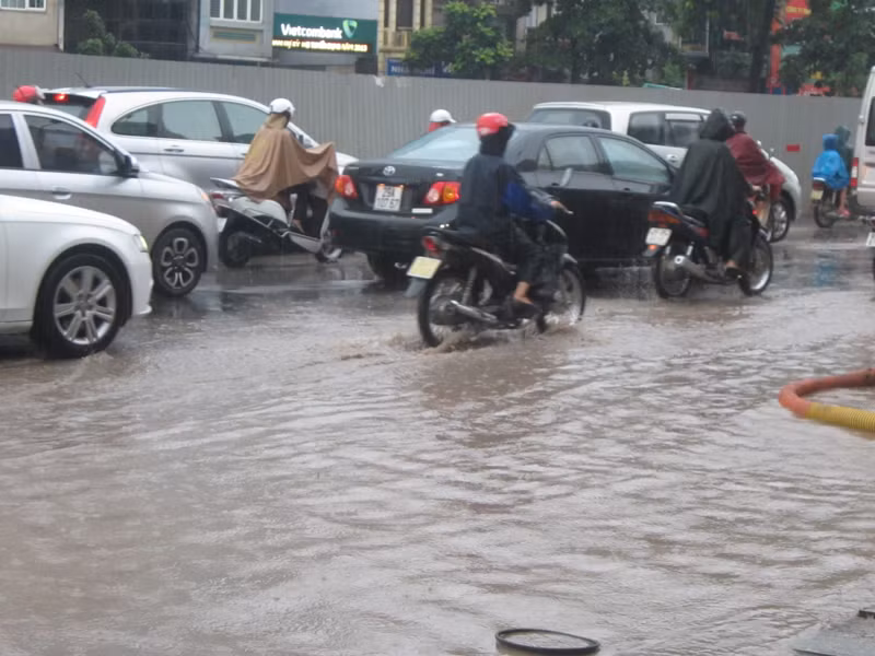 Mưa lớn, đường Hà Nội lại ngập