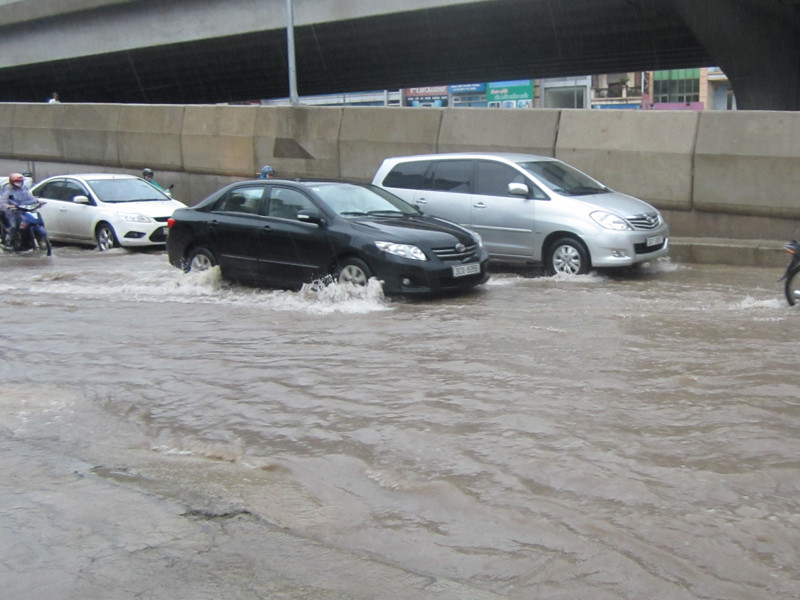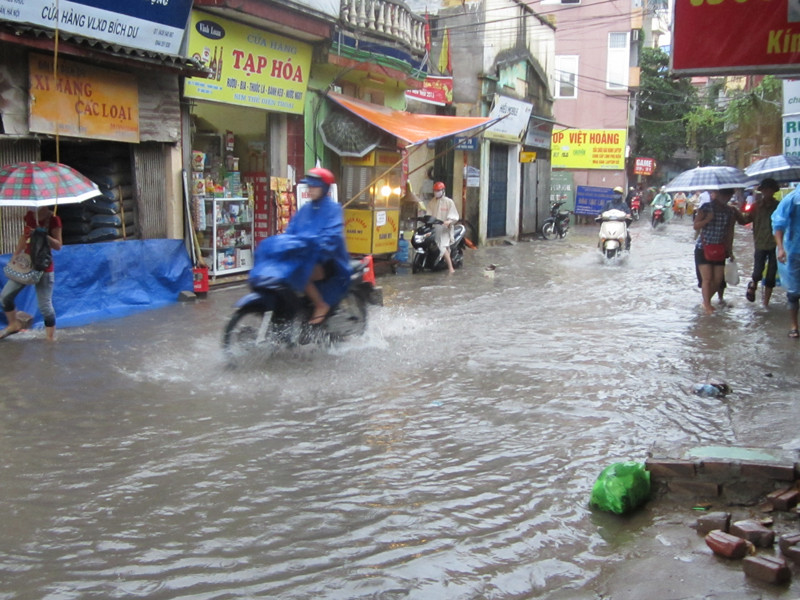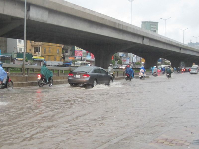 | Nhiều tuyến đường như Vũ Trọng Phụng, Triều Khúc bị ngập sâu . |