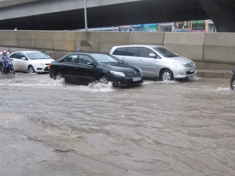 | Đường Nguyễn Xiển sau mưa lớn tắc đường, ngập lụt liên tục xảy ra. |