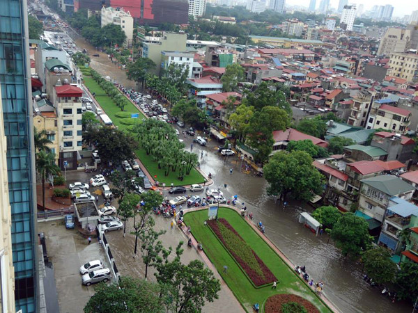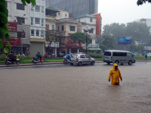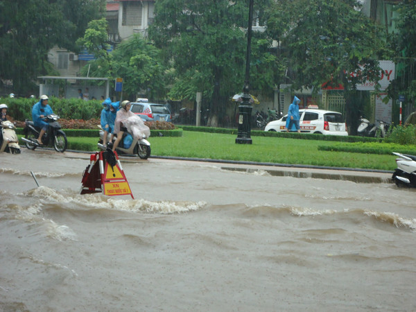 TPO – Sau trận mưa sáng nay (8/8), nhiều tuyến phố của Thủ đô Hà Nội lại chìm trong nước. Nước Hồ Gươm đã tràn ra đường, gây ngập. Các phương tiện gặp nhiều khó khăn khi tham gia giao thông.
