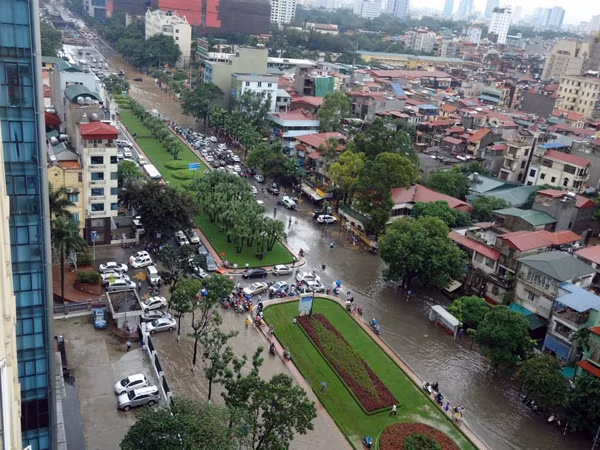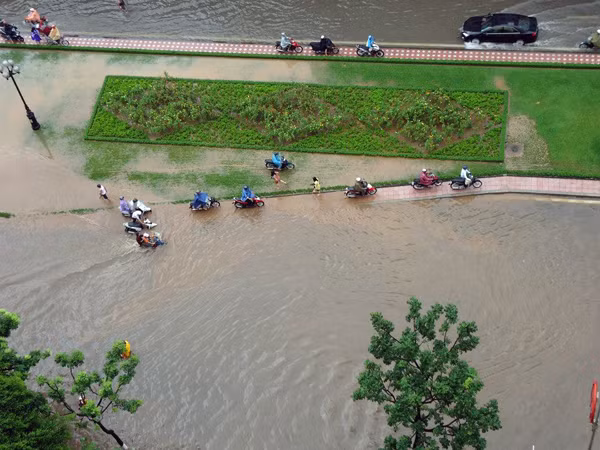 >Mưa lớn, đường Hà Nội lại ngập