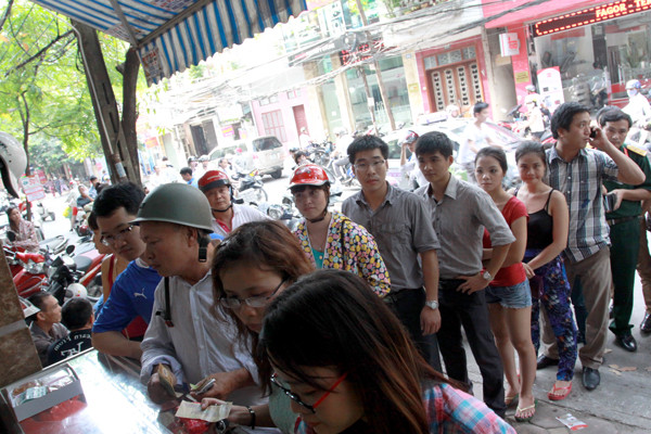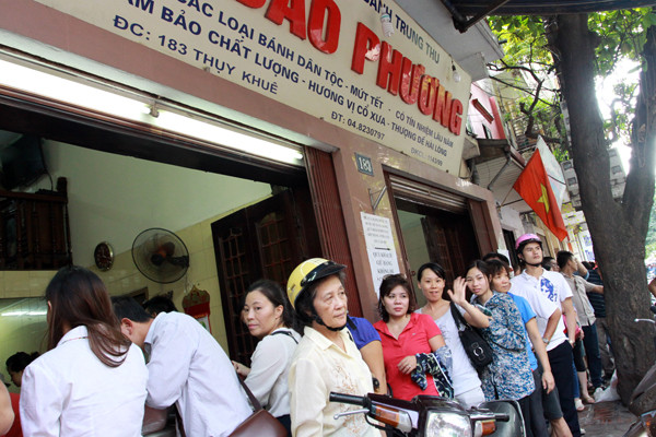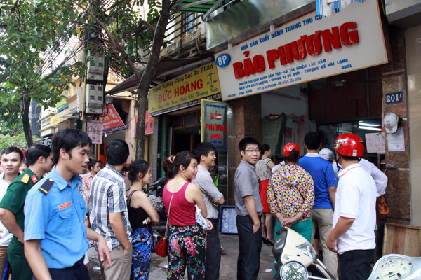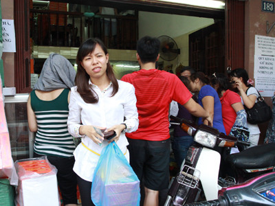 Cảnh xếp hàng mua bánh trung thu trên phố Thụy Khuê. Ảnh: Minh Đức