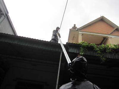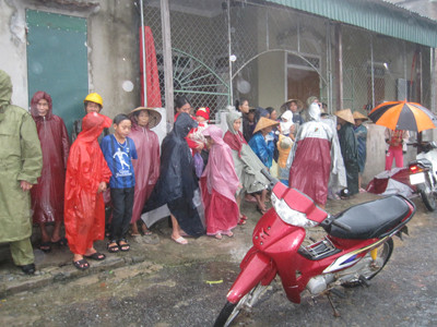 Hơn 9 giờ sáng nay, PV Tiền phong có mặt tại xã Kỳ Lợi, Kỳ Anh, mưa xối xả, hai bên đường người dân hô hoán nhau dọn đồ để di dời, trên các mái nhà, người dân kéo dây chằng lợp chống bão.