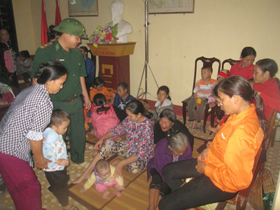 Khoảng 9 giờ 30 phút, tại hội trường Đồn biên phòng Cảng Vũng Áng, có gần 500 người dân xã Kỳ Lợi được di dời đến nơi an toàn.