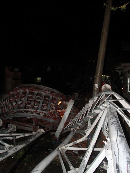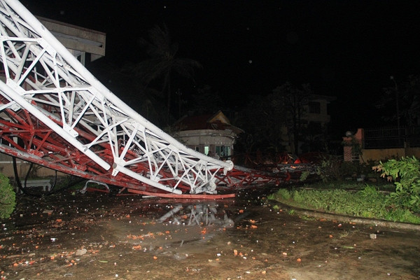 Tại phường Đồng Phú, thành phố Đồng Hới, lúc 16 giờ 15, Cột thu phát sóng Đài phát sóng, phát thanh Đồng Hới thuộc Đài tiếng nói Việt Nam, cao 142m đã bị bão uốn cong và xô đổ đè lên trụ sở hai tầng của đơn vị này và làm đổ thêm một số nhà dân ở gần kề.
