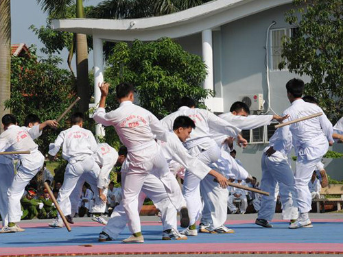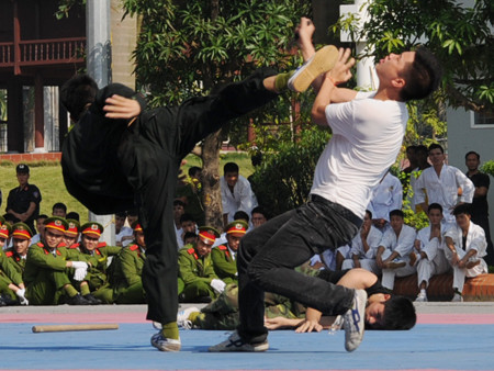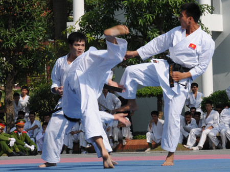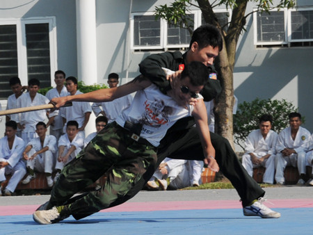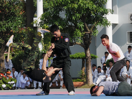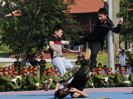 | Các học viên Trung đoàn biểu diễn võ thuật. |