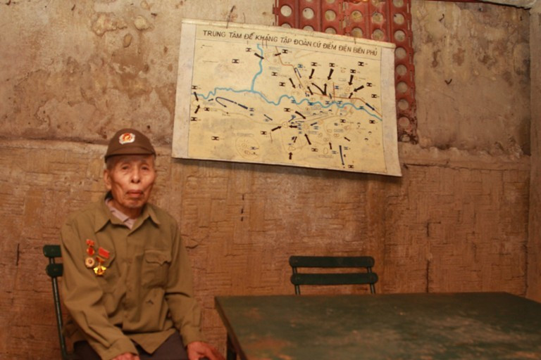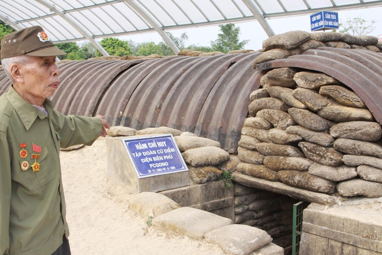 | Cụ Hà thăm lại chiến tích quân ta đã đánh chiếm hầm chỉ huy của Đờ Cát. |