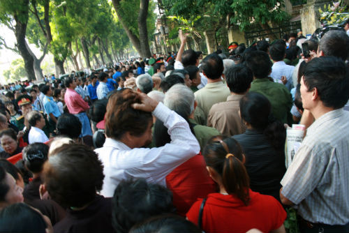 | Nhiều người chỉ đứng bên kia đường bày tỏ lòng thành kính trước sự ra đi của Đại tướng. |
