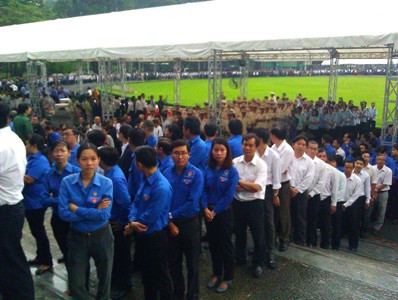 Theo chương trình, buổi chiều, các cá nhân mới vào viếng nhưng ngay từ sáng sớm nhiều người đã có mặt ở Dinh Thống Nhất. Họ cầm trên tay những bó cúc vàng, mắt rưng rưng đợi được vào viếng.