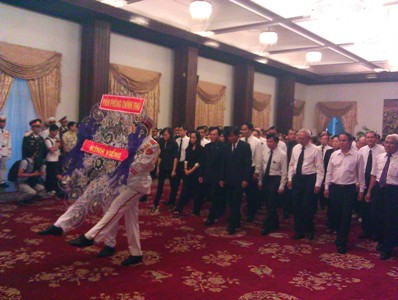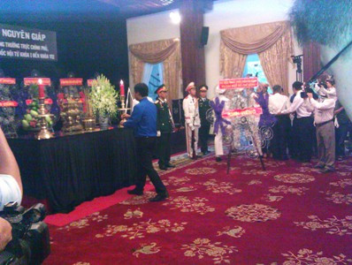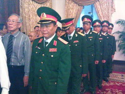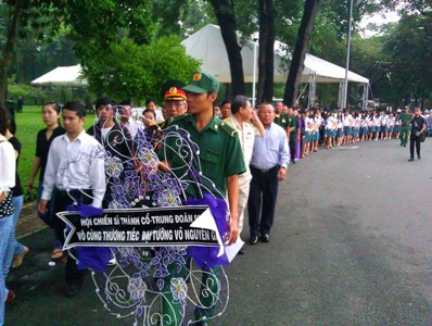 7h sáng, đoàn của Đảng ủy, HĐND, UBND, UBMT Tổ quốc, Đảng Ủy bộ tư lệnh quân khu 7 và đông đảo cán bộ nguyên là lãnh đạo của UBND TP qua các thời kì đến viếng tướng Võ Nguyên Giáp.
