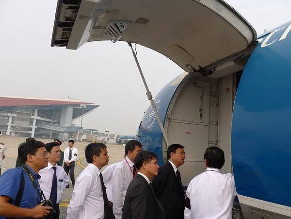 Bộ trưởng Đinh La Thăng thị sát chuyên cơ trước giờ cất cánh. Ảnh: Đình Thắng