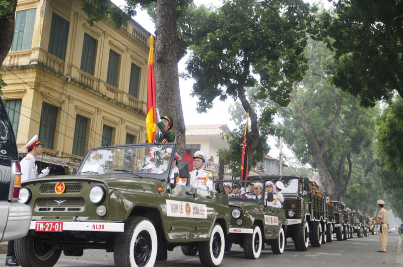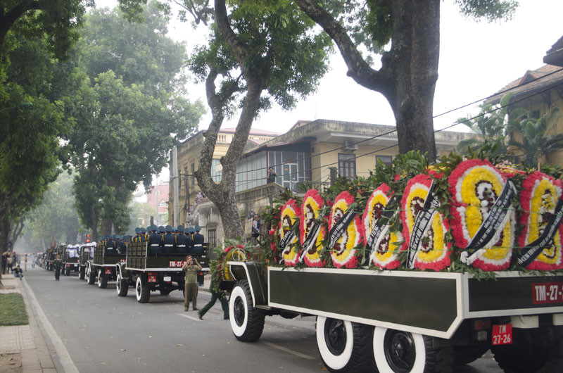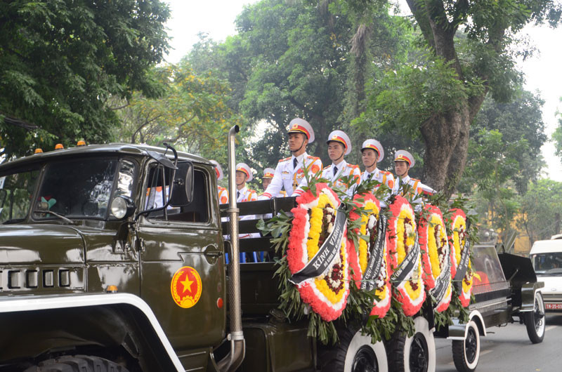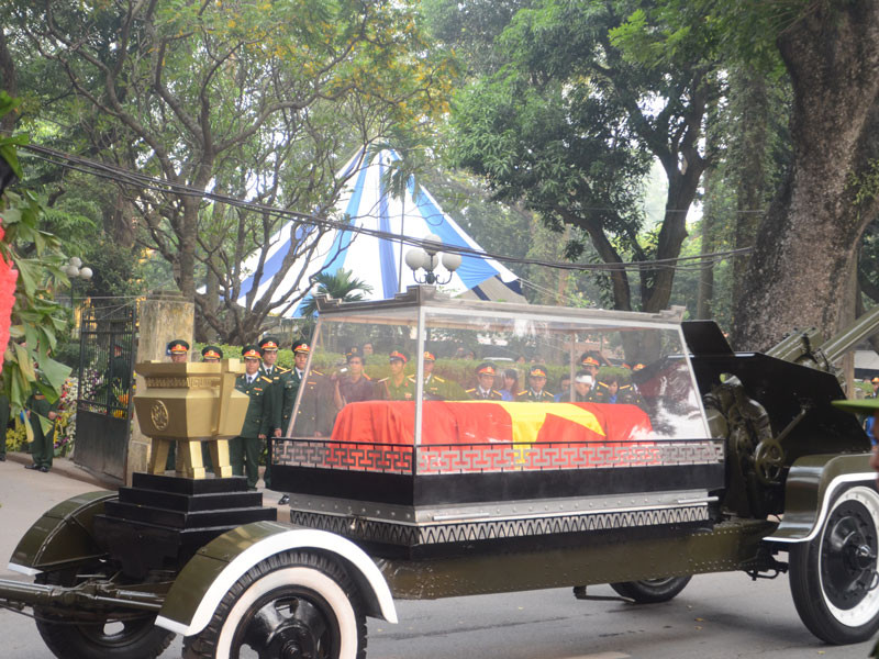 | Linh cữu Đại tướng Võ Nguyên Giáp đi qua 30 Hoàng Diệu, Hà Nội. |
