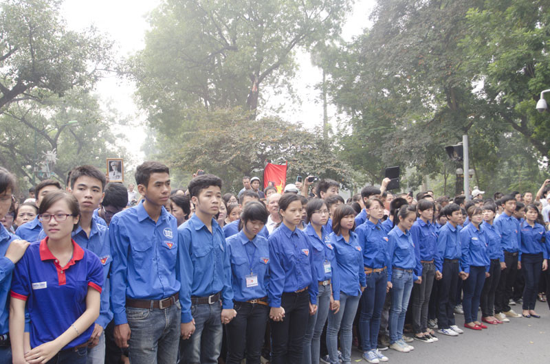 | Thanh niên tình nguyện tiễn đưa Đại tướng. |