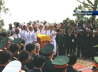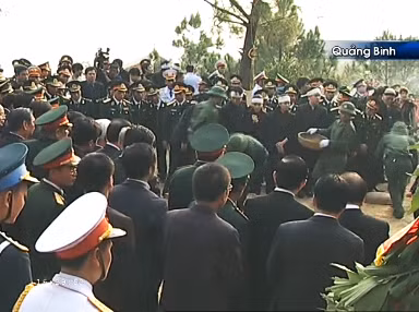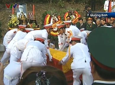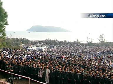 | | Trong tiếng nhạc Hồn tử sĩ trầm buồn, người dân ở khu vực Vũng Chùa òa khóc nức nở. Nhiều người dân quỳ xuống hướng về linh cữu Đại tướng vái lạy. |
