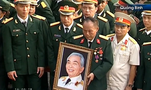 | | Phó Thủ tướng Nguyễn Xuân Phúc, Trưởng Ban tổ chức Lễ tang chia sẻ với gia quyến, với nhân dân Quảng Bình trước khi làm lễ an táng Đại tướng. Lễ an táng bắt đầu.