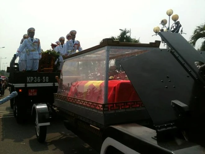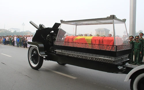 Sau đó, đoàn xe tiêu binh và linh xa từ từ lăn bánh qua các con phố trung tâm Hà Nội, đi qua Quảng trường Ba Đình và Lăng Chủ tịch Hồ Chí Minh, trước khi dừng bánh ở 30 Hoàng Diệu, ngôi nhà gắn bó với gia đình Đại tướng nhiều năm qua và cũng là nơi gần 10 ngày qua hàng chục nghìn người từ khắp mọi miền Tổ quốc đã về tưởng niệm vị tướng lẫy lừng của dân tộc.