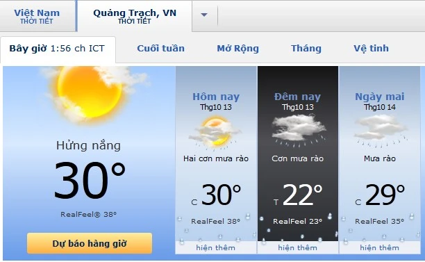 | | Hiện nhiệt độ tại Quảng Trạch đã tăng 1 độ so với một giờ đồng hồ trước đó.