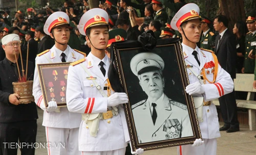 Đọc lời điếu Đại tướng, Tổng bí thư Nguyễn Phú Trọng đã nhắc lại công lao của Đại tướng Võ Nguyên Giáp đối với sự nghiệp cách mạng của dân tộc, góp phần cùng toàn Đảng, toàn quân và toàn dân làm nên những chiến thắng vĩ đại. Tên tuổi của Đại tướng gắn liền với hai cuộc kháng chiến chống Pháp và chống Mỹ, xây dựng đất nước đi lên Xã hội Chủ nghĩa.