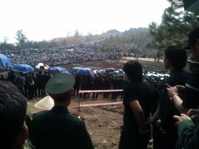 | | Phóng viên Nam Cường cho biết: Công tác chuẩn bị tại khu vực an táng đã được hoàn thành lúc sáng sớm. Vì thế, tất cả các cán bộ chiến sĩ cùng hàng vạn người dân đã tề tựu, ngóng từng phút từng giây. (XEM TIẾP HÌNH ẢNH) Trên núi Rồng, dưới bờ biển, những biển người không quản ngại nắng trưa gay gắt kiên nhẫn đứng chờ. Hàng ngàn dân không tiếp cận được khu vực Vũng Chùa đã phải đi bộ, cắt rừng, xuyên ruộng bởi ai cũng muốn có mặt tại thời khắc linh thiêng tiễn đưa Đại tướng…