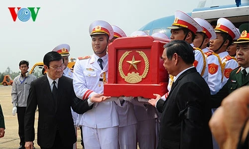 Cuối giờ sáng nay, linh cữu Đại tướng được rước lên chuyên cơ mang số hiệu VN 103 - tượng trưng cho tuổi thọ của Đại tướng.