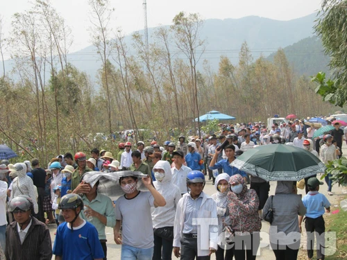 Con đường mới được mở, đã rải đá cấp phối khá khô ráo và chắc chắc dù hôm qua trời mưa. Hàng nghìn người ngồi trên núi chờ xe chở linh cữu Đại tướng đi qua. Tiết troi oi nồng nhưng những bước chân vẫn tiến về nơi sẽ an nghỉ của một bậc công thần cách mạng. | |