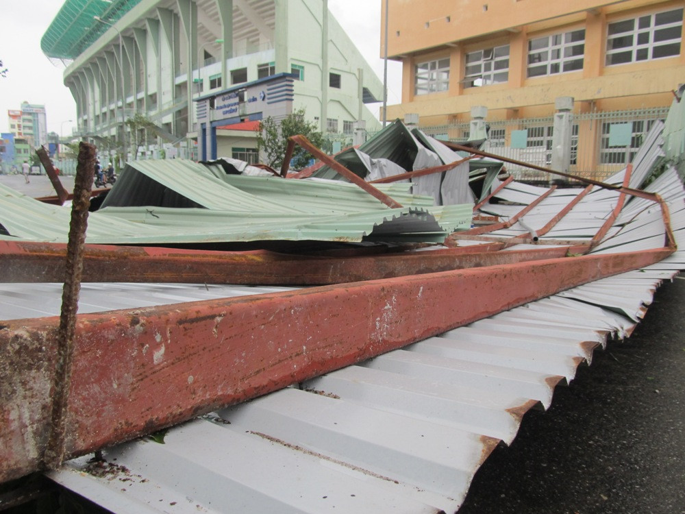 Đến gần 13 giờ chiều nay, Đà Nẵng bắt đầ tạnh mưa, nhưng những con gió rít dữ dội vẫn khiến thành phố quay cuồng. Người dân đa bắt đầu ra dọn dẹp đống đổ nát. PV Tiền Phong ghi lại những hình ảnh trong từ tâm bão: