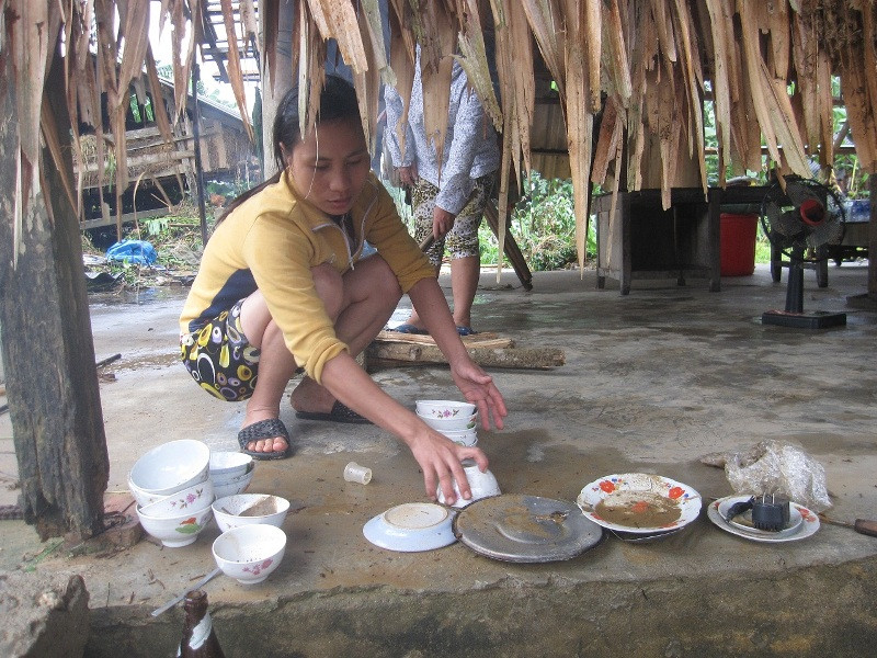| Bà Đặng Thị Liên khóc vật vã khi số tài sản gom góp cả mấy năm trời bị lũ cuốn mất. |