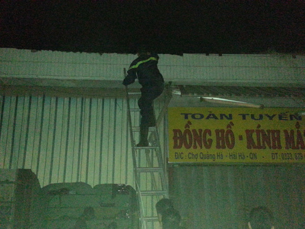 TPO - Lúc 19 giờ ngày 25/10, tại chợ Trung tâm huyện Hải Hà (Quảng Ninh) xảy ra vụ hỏa hoạn lớn thiêu rụi gần 100 gian hàng. Ước tính ban đầu, vụ cháy gây thiệt hại khoảng 5 tỷ đồng.