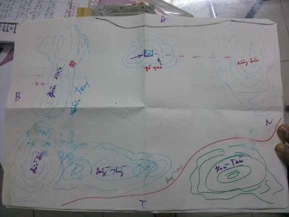 | Bản sơ đồ "thầy" Phụng (Thụy Khuê) vẽ đường tìm mộ cho gia đình chị Thanh. |