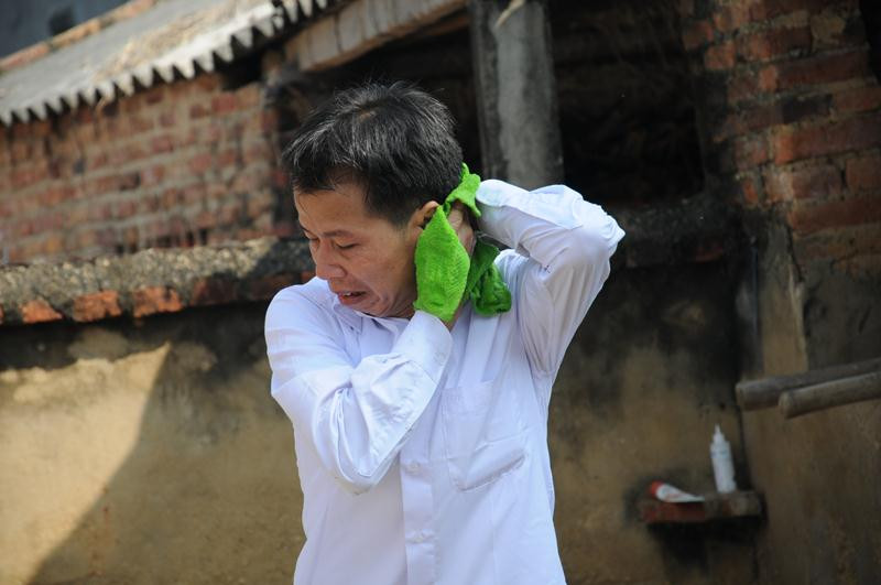 Ngày 5/11, một ngày sau khi được trả tự do, ông Nguyễn Thanh Chấn (52 tuổi, trú tại thôn Me, xã Nghĩa Trung, huyện Việt Yên, Bắc Giang) mới có thời gian để ra nghĩa trang thắp hương cho bố mình cùng ông bà tổ tiên. Xe máy của người dân đến thăm hỏi, động viên cũng như của cánh phóng viên báo chí xếp hàng dài từ ngoài ngõ vào trong sân.