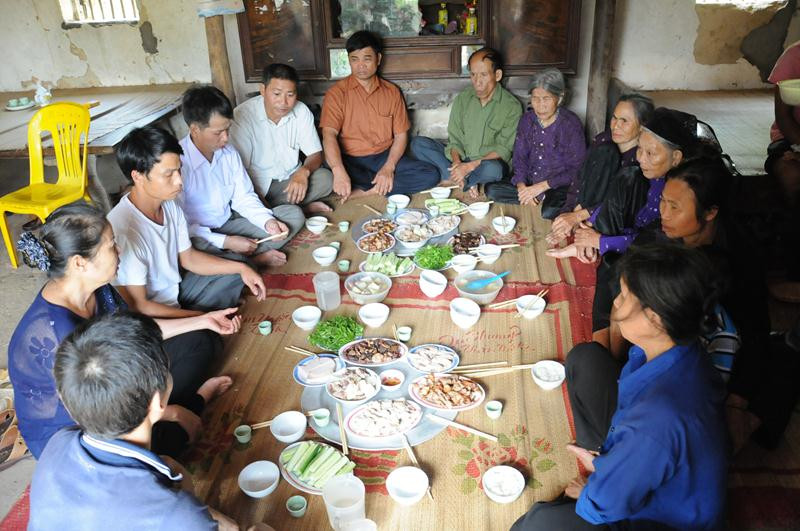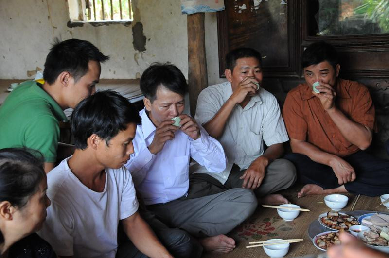 | Bà con hàng xóm trò chuyện rôm rả, chúc mừng ông Chấn được trở về nhà, chờ được minh oan. |