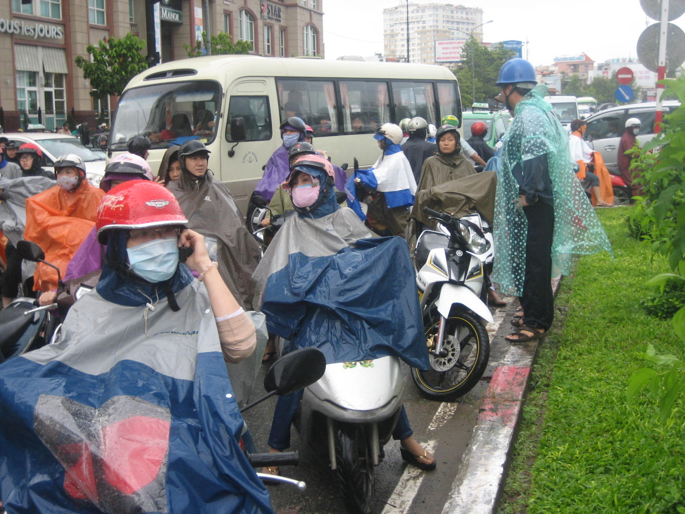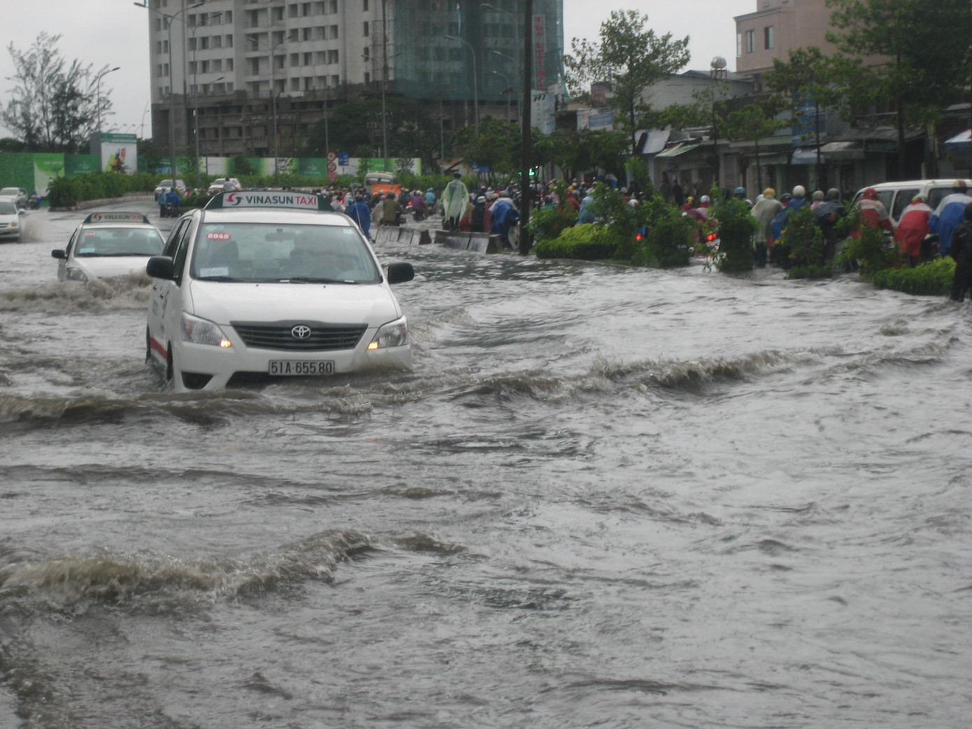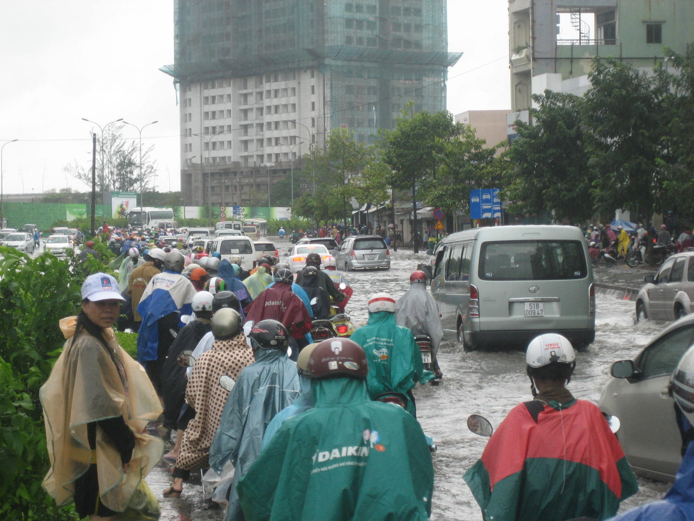 Trên tuyến đường Kha Vạn Cân (quận Thủ Đức) mưa kéo dài từ chiều tối ngày 6/11 tới trưa nay vẫn chưa dứt kết hợp cùng triều cường khiến mặt đường bị ngập sâu cả mét. Hàng loạt phương tiện đặc biệt là xe máy lưu thông đến đây bị ngập lút bánh xe khiến nhiều xe bị chết máy. Nước ngập vào giờ cao điểm khiến hàng ngàn phương tiện ùn ứ kéo dài.